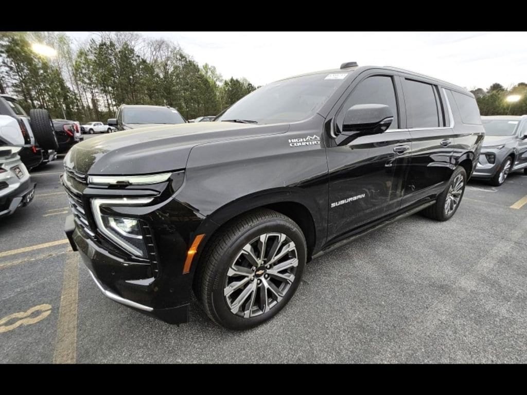 Black 2025 Chevrolet Suburban High Country 4WD 10-Speed Automatic with Overdrive EcoTec3 6.2L V8 **VEHICLE IS A BUYBACK THAT WAS REPAIRED BY MANUFACTURER & UNDER FACTORY WARRANTY, **ALLOY WHEELS, **APPLE CARPLAY/ANDROID AUTO, **BLIND SPOT DETECTION, **BLUETOOTH, **COOLED SEATS, **HEADS UP DISPLAY, **HEATED SEATING, **LEATHER SEATING, **NAVIGATION, **ONSTAR TELEMATICS SYSTEM, **PANORAMIC SUNROOF, **POWER LIFTGATE, **PREMIUM AUDIO SYSTEM, **PUSH BUTTON START, **REAR BACKUP CAMERA, **REMOTE START, **RUNNING BOARDS, **SIRIUS XM SATELLITE RADIO, **TOWING PACKAGE, **VEHICLE REACQUIRED FOR ENGINE NOISE. ISSUES RESOLVED BY MANUFACTURER UNDER WARRANTY..